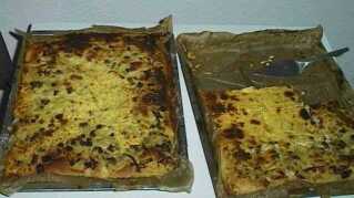 einem Teig kneten. Auf gefettetem Blech verteilen.